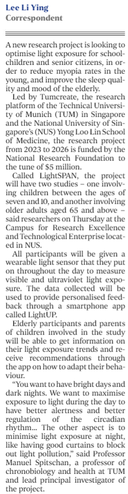 Light has a profound influence on human health, cognition and well-being. Yet, across one’s lifespan, sub-optimal light exposure is leading to significant health decrements. The optimisation of exposure to light on a daily-basis, can lead to healthier eye and brain development. The LightSPAN Project, funded by the National Research Foundation of Singapore, was launched on November 9th, 2023. The project will investigate how we can optimize light exposure to support health and well-being across the lifespan.