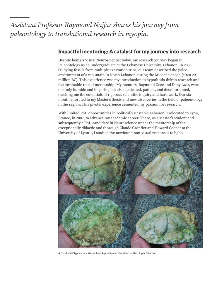 Assistant Professor Raymond Najjar shares his journey from paleontology to translational research in myopia with Medicine NUS magazine.