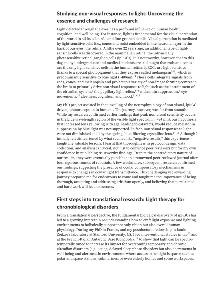 We extend our sincere thanks to Prof Gronfier for sharing his expertise and for inspiring our team with new perspectives on the vital role of light in human health.