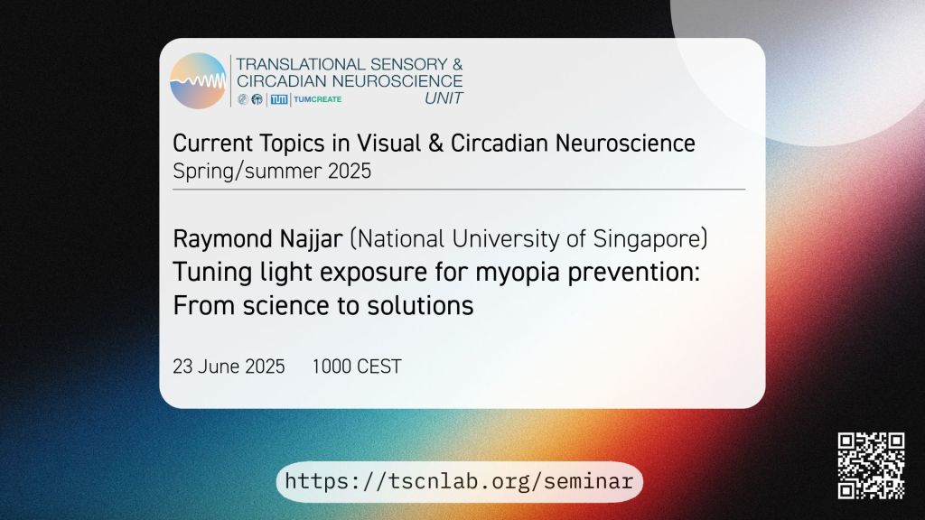 On Monday, 23 June 2025, Dr. Raymond Najjar from the National University of Singapore delivered an engaging online talk as part of the Current Topics in Visual & Circadian Neuroscience seminar series. This series, curated by the Translational Sensory & Circadian Neuroscience Unit (a joint initiative of MPS, TUM, and TUMCREATE led by Prof. Dr. Manuel Spitschan), brings together global researchers working at the interface of vision, light, and the brain.