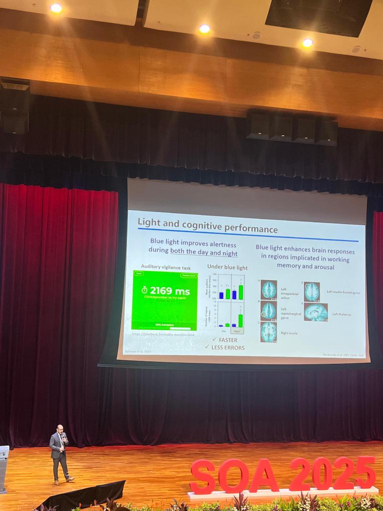 Prof Gronfier is internationally recognised for his work on circadian biology and the impact of light on human physiology. In his talk, he discussed how light influences not only our circadian rhythms but also a range of non-circadian functions, shaping everything from alertness and cognition to long-term health outcomes.